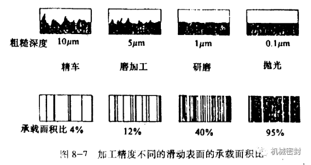 该法是通过轮廓仪或粗糙度仪来测量摩擦表面磨损前后的轮廓或粗糙度变化来确定磨损量。这是因为密封而的承载而积比随着表面粗糙度的变化而改变的缘故(图8-7)